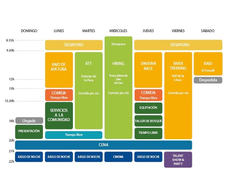 ¿Quieres saber lo que haremos durante el camp? Este es el programa que hemos diseñado para la semana: