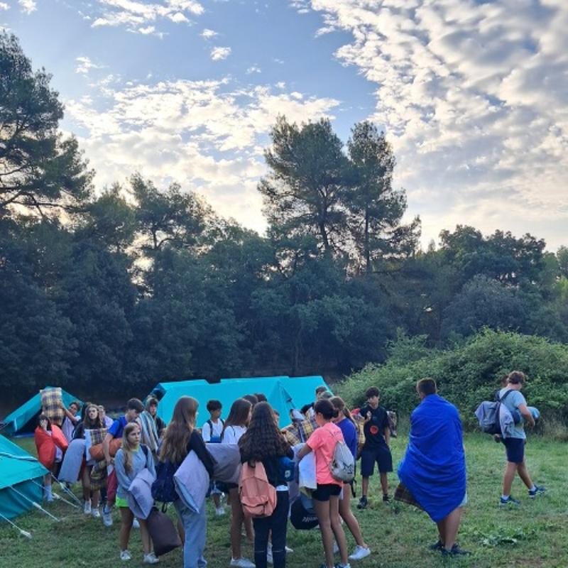 El campamento se instala en el mismo entorno de la casa de colonias, lo suficientemente cerca para garantizar la seguridad y lo bastante separado para sentir la auténtica experiencia de dormir al aire libre, rodeados de naturaleza y lejos de la rutina.