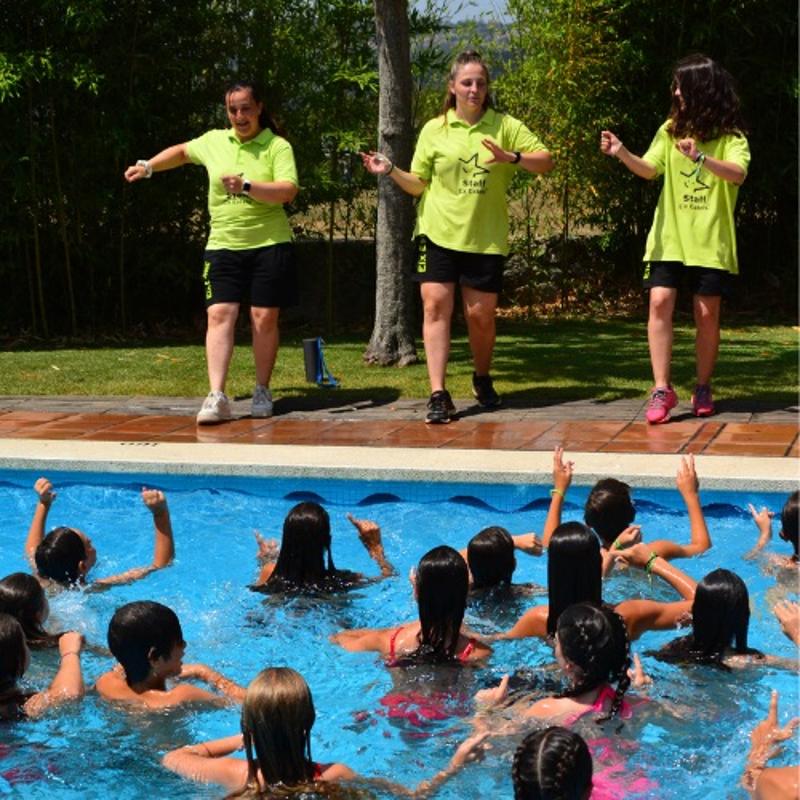 Cada día hay piscina, pero no solo para bañarse. El espacio acuático se convierte en un auténtico escenario de juego, con pruebas refrescantes, juegos colectivos, gymkhanas de agua y retos divertidos que garantizan risas y movimiento constante. Todo ello hace que las colonias sean muy activas, dinámicas y llenas de momentos emocionantes.