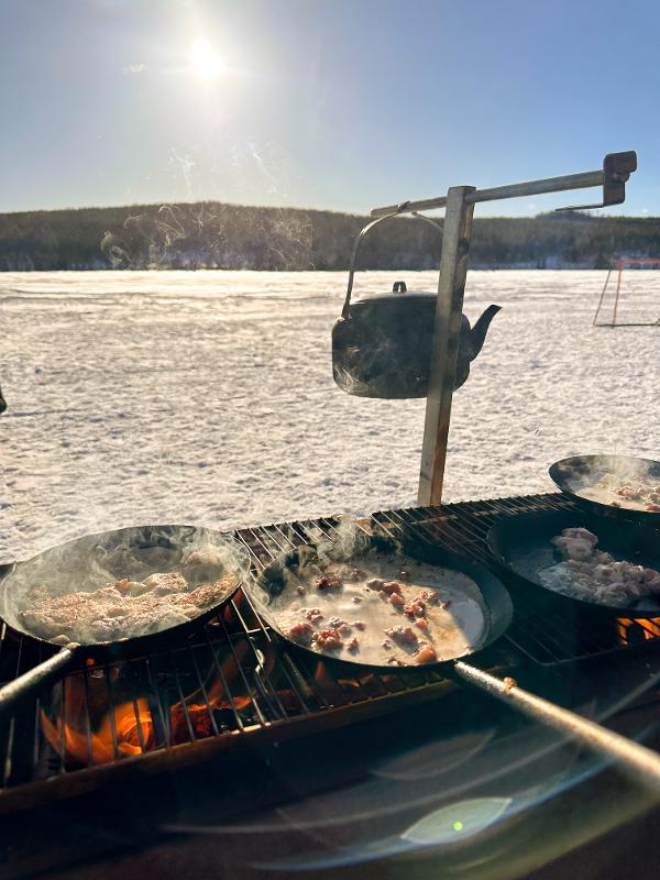 Durante tu estancia en Suecia, se te proporcionarán tres deliciosas comidas al día, adaptadas a tu programa de aventuras. En el acogedor comedor, empezarás el día con un abundante desayuno que incluye delicias tradicionales suecas. El almuerzo se prepara a menudo en fogones de leña en el campamento. Si sales durante el día, te darán un almuerzo nutritivo para llevar, perfecto para disfrutar durante actividades como la pesca o el senderismo.
