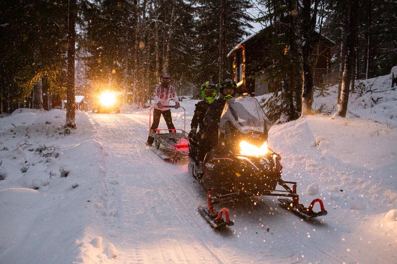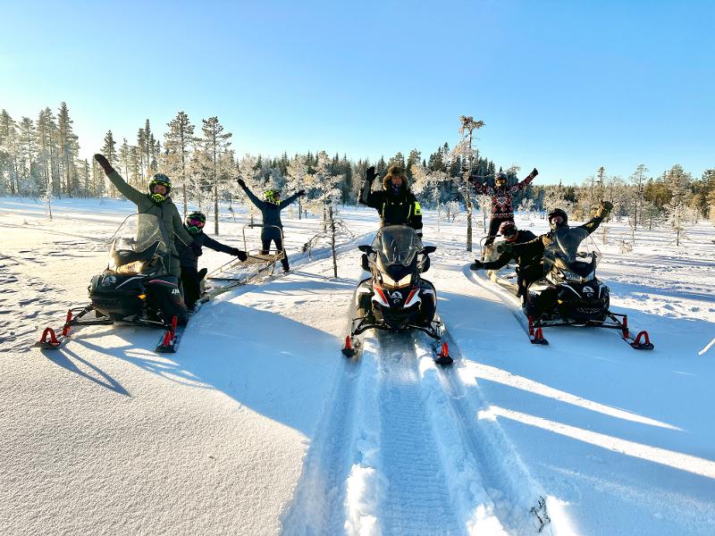 Explora el extenso paisaje invernal con la moto de nieve. Te sentarás en un trineo detrás de la moto de nieve o irás en la parte trasera de la moto de nieve de un guía. Conduciremos a través de bosques y lagos helados. ¡Quizás incluso veas un alce u otros animales salvajes! Una experiencia que te hará sentir libre como nunca antes. La excursión se adapta a los deseos del grupo y, sin duda, será una actividad que no se olvidará fácilmente.