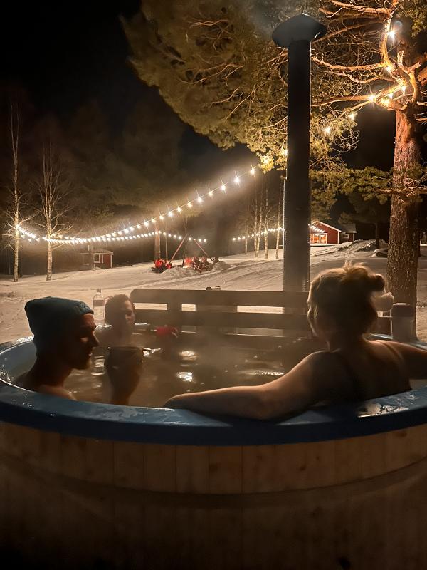 En el recinto encontrarás diversas instalaciones. ¿Quieres relajarte durante o entre las actividades? El recinto se encuentra junto al hermoso lago helado de Gastsjö, donde puedes dar un agradable paseo por el bosque o deslizarte por el lago con neumáticos por la pista de nieve. También puedes utilizar una vez la sauna o el jacuzzi con unas fantásticas vistas al lago y, quién sabe, quizá veas el espectáculo de luces del norte. Para las horas libres, también es posible reservar actividades adicionales, incluso por la noche es genial realizar actividades adicionales.