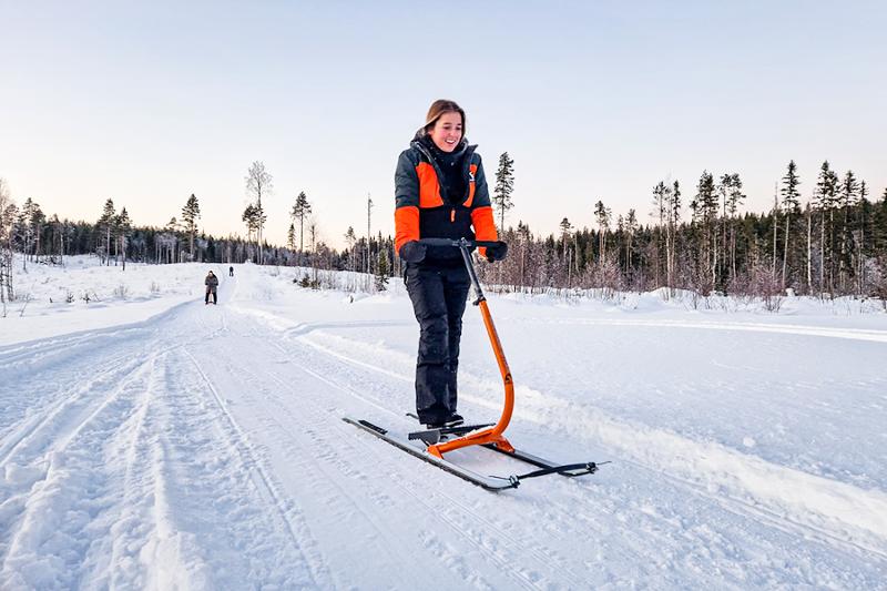 ¡El snowstep es una actividad invernal muy divertida y activa! Durante un emocionante recorrido en descenso, te deslizarás por estrechos senderos forestales y lagos helados. Dominar el manejo es todo un reto, sobre todo en los descensos, ¡pero la diversión y la emoción están garantizadas! El snowstep es apto para todos y la ruta se puede adaptar al nivel y la velocidad de cada uno.