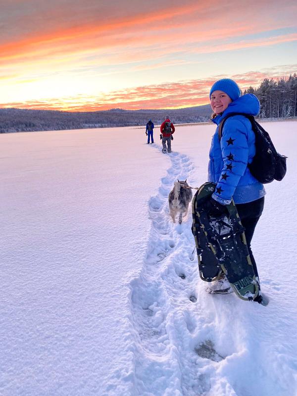 Ponte las raquetas de nieve y camina hasta un mirador con unas vistas impresionantes del paisaje invernal en la cima de la montaña Gastsjö. Durante el camino, el guía te contará todo sobre la naturaleza y los animales de la zona. Durante el descenso, habrá que dar varios saltos y trepar bastante. Junto con el guía, buscarás el mejor camino para bajar. Esta excursión es bajo tu propia responsabilidad y, si se vuelve demasiado arriesgada, siempre hay otro camino