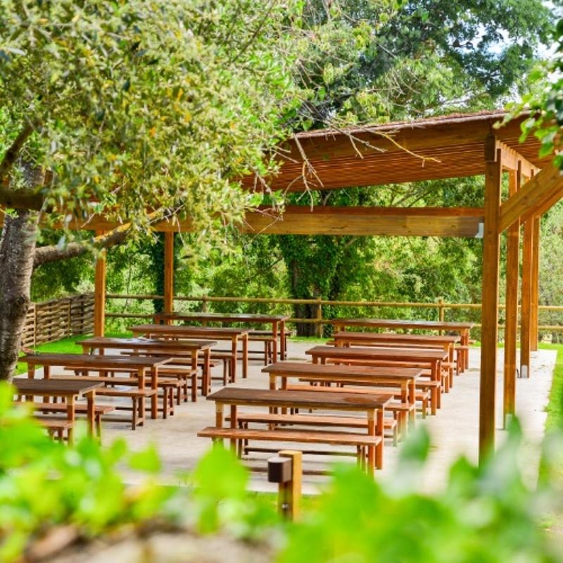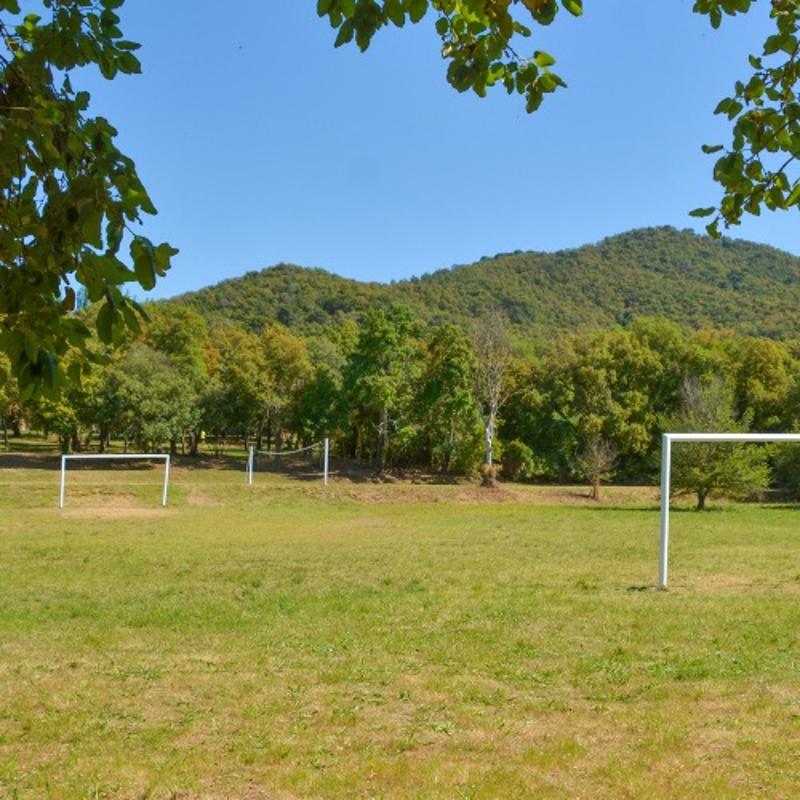 En el exterior, ofrece patio, porche cubierto, prado cerrado y campos deportivos de fútbol, voleibol y baloncesto, creando el escenario perfecto para disfrutar de unas colonias activas y en plena naturaleza.