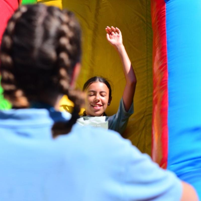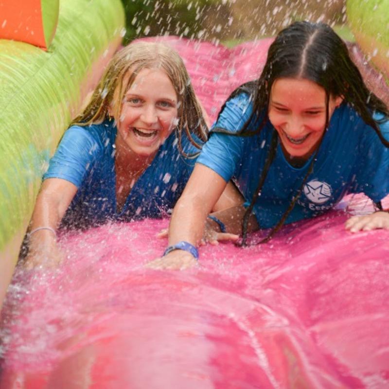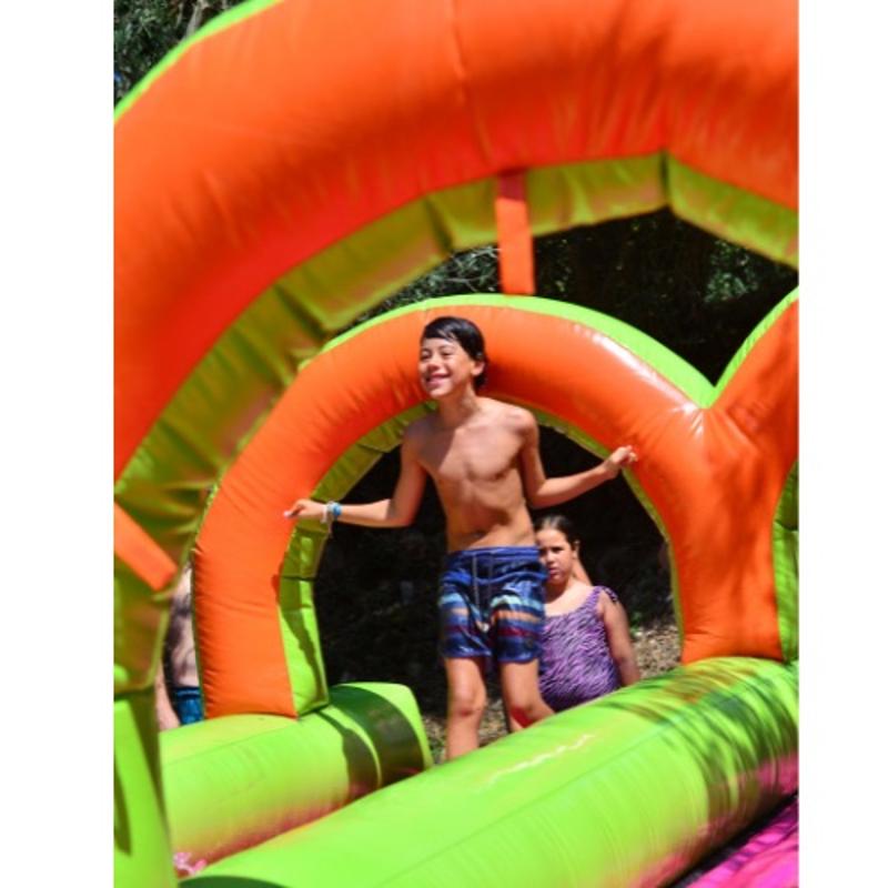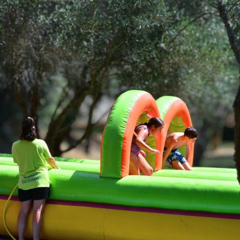 Cada día hay piscina, entendida como un espacio de juego y diversión. Se proponen pruebas acuáticas, juegos colectivos que terminan en el agua, hinchables con tobogán y retos refrescantes que hacen de cada baño un momento activo y emocionante.