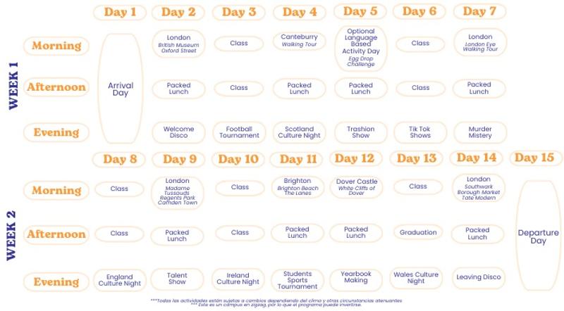 Nota: Los vuelos de ida y vuelta no están incluidos en el precio del campamento.