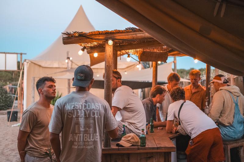 Un campamento de surf no está completo sin una bebida refrescante. Todos los días a las 16:00 horas abre nuestro beachbar en el campamento. Allí te esperan bebidas bien frías, música veraniega y buena compañía para relajarte después de un día activo.