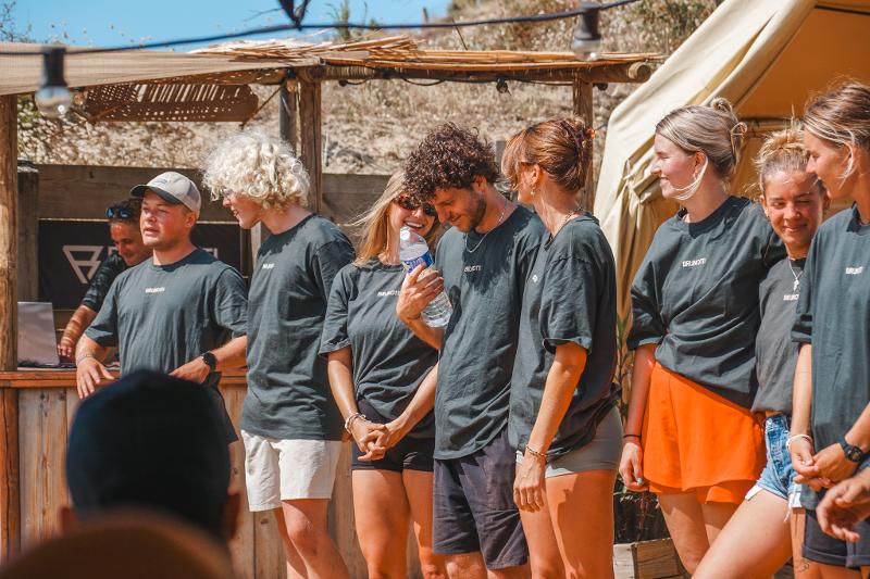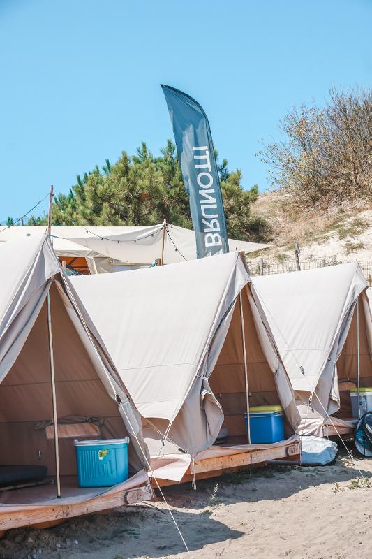 Durante el campamento, te alojarás en una tienda bungalow. ¡Las tiendas se encuentran en un glamping a solo 150 metros de la playa! Gracias a las modernas tiendas, disfrutarás de un buen descanso después de un largo día en el agua. Puedes elegir entre varios tipos de alojamiento. Si te gusta más el lujo, elige el Glamping o el Glamping «Premium». Atención: estos alojamientos están disponibles con un suplemento. El precio depende de la tienda y del número de participantes que duerman en ella.