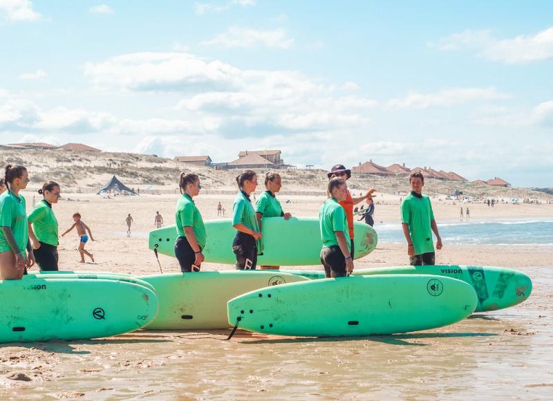 Nuestros monitores de surf son todos monitores titulados. Tienen mucha experiencia dando clases de surf en Francia. También te enseñarán en grupos de hasta 8 participantes.