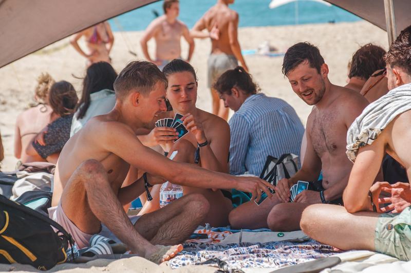 Hay muchas cosas divertidas que hacer además del surf. ¿No te cansas del océano? ¡Entonces practica bodyboard o skimboard! Si prefieres quedarte en tierra firme, juega un partido de voleibol playa con tus (nuevos) amigos. Todos los días hay una cancha de voleibol a tu disposición, cerca de la carpa común en la playa. ¿Prefieres simplemente relajarte, disfrutar del sol y ver a otras personas surfear? Entonces la carpa común es el lugar ideal para ti. Todos los participantes y el equipo suelen pasar el rato aquí. Se pone música y se charla animadamente.